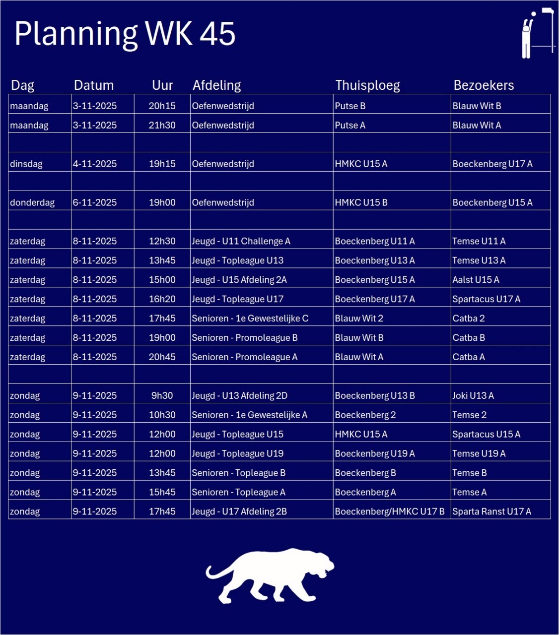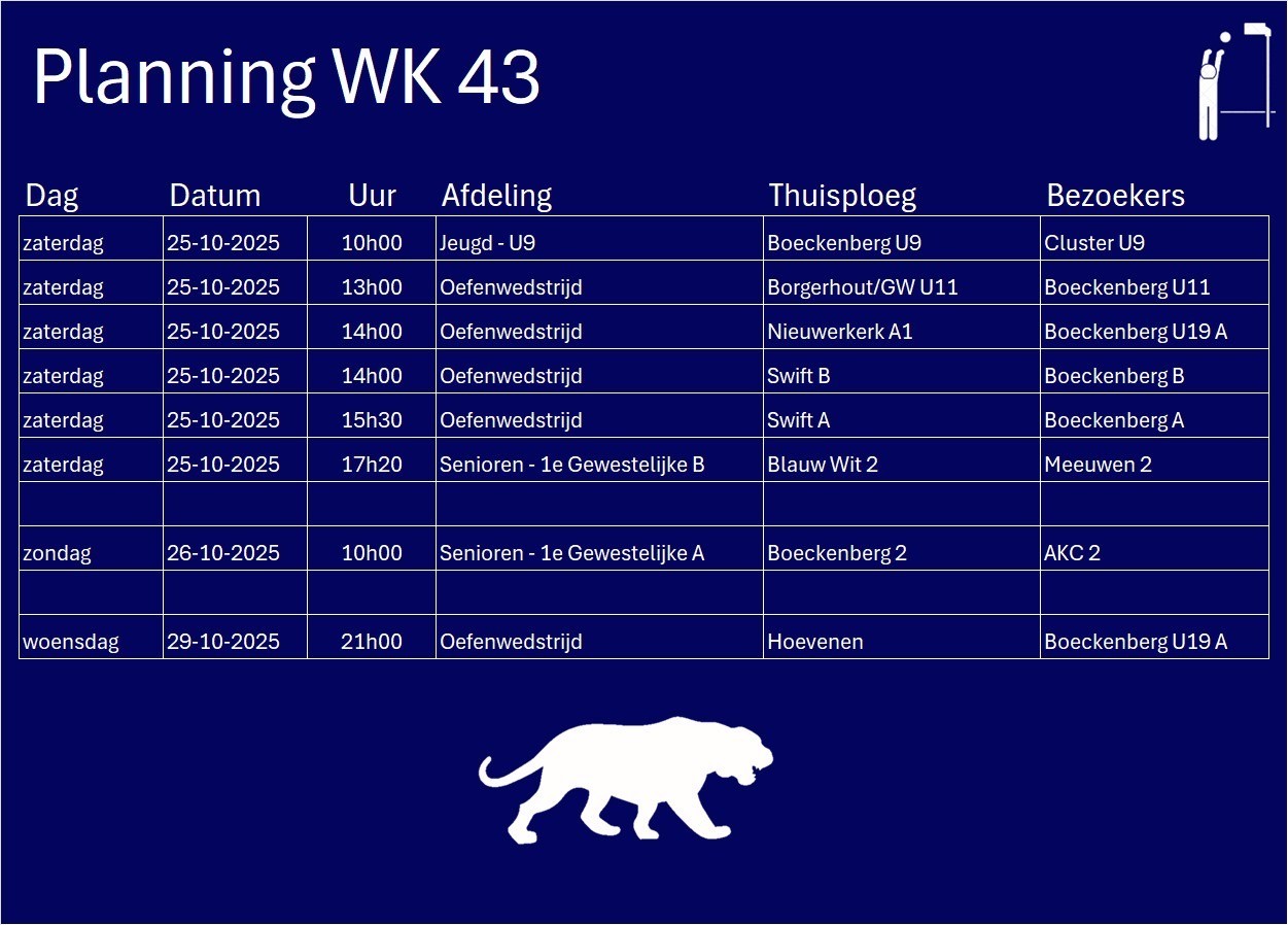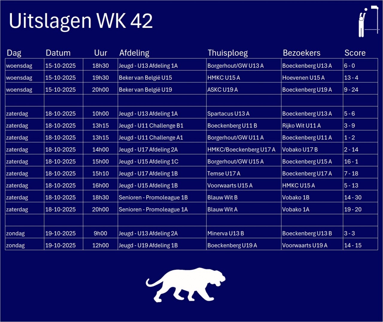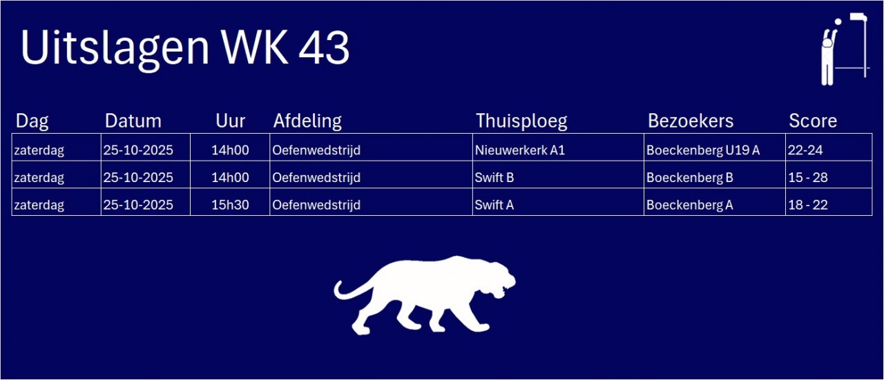 Wissels : Ruben V (1), Mattijs P (s), Senne DW, Julie DH